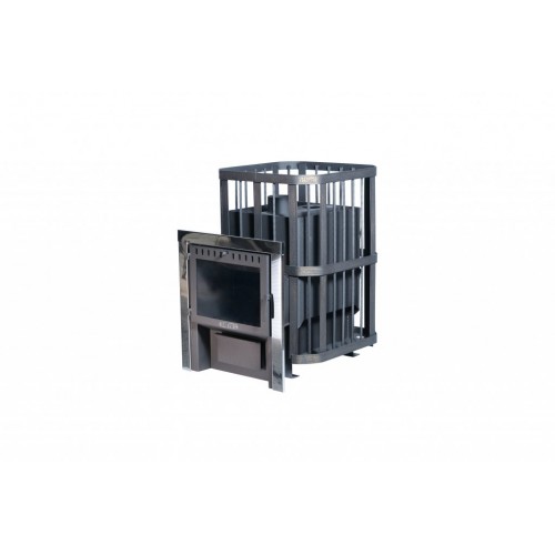 Панорамное стекло, диагональю 43 см, делает процесс топки завораживающим. Согласно народной поговорке человек безотрывно может смотреть на три вещи – на огонь, воду, и на то, как другие люди работают. Данная печь объединяет эти три вещи и сделает всё сама – и даст возможность смотреть на живой огонь через термостойкое стекло, согреет воду в баке, а также сделает обстановку в бане тёплой и комфортной. Эстетика камней наполнит парную уютом и создаст неповторимую атмосферу живого общения с природой в Вашей бане.