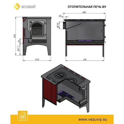 Отопительная печь «Везувий» В9С предназначена для установки в различных хозяйственных помещениях небольшого размера, садовых домиках, жилых помещениях временного проживания. Печь изготовлена из особопрочной котловой стали марки 09Г2С.
